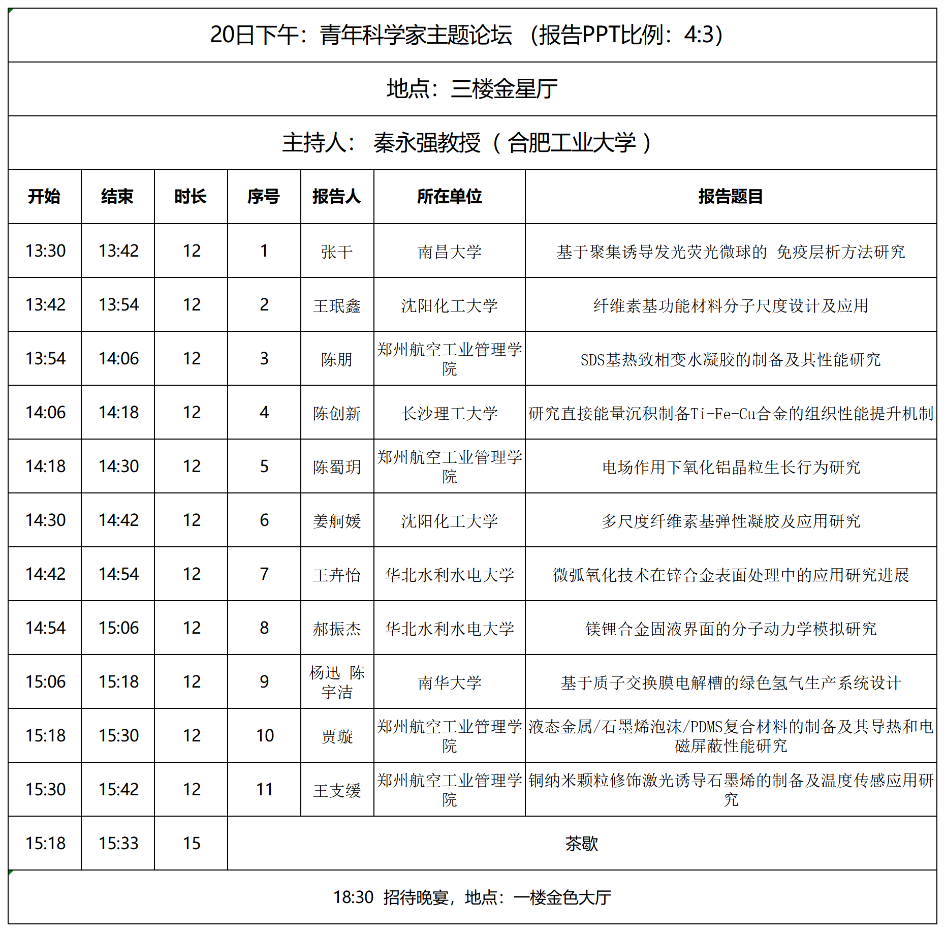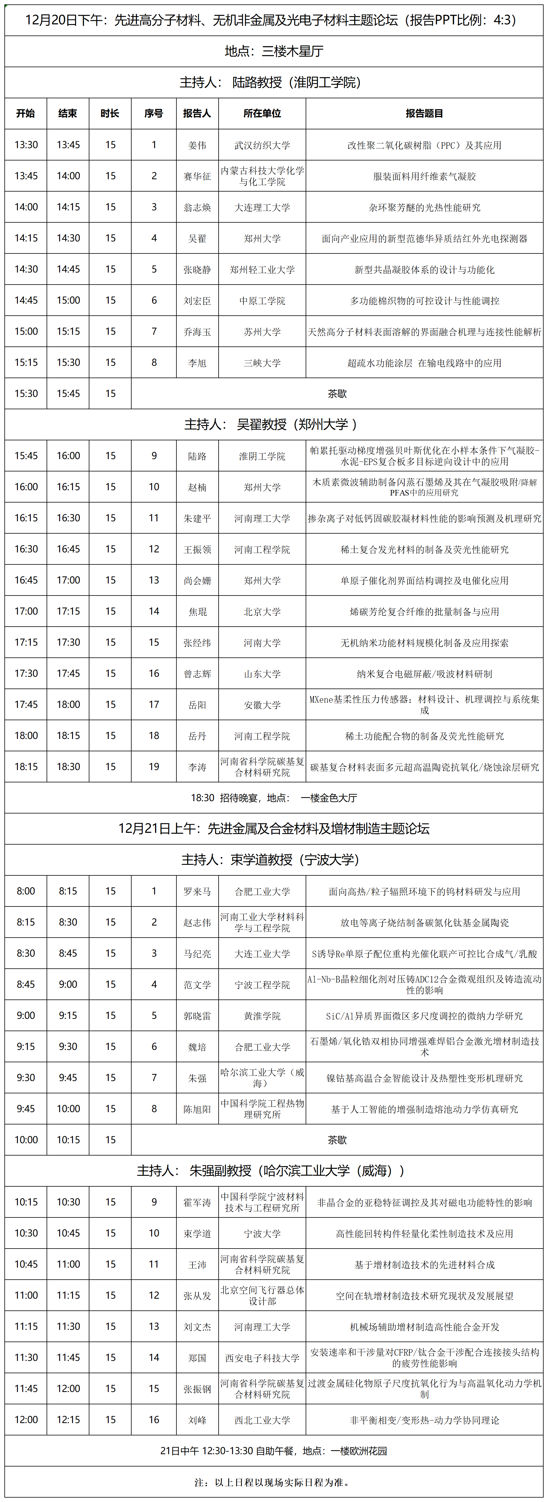 12月20日下午及21日上午:先进高分子材料、无机非金属、光电子材料、先进金属及合金材料及增材制造主题论坛