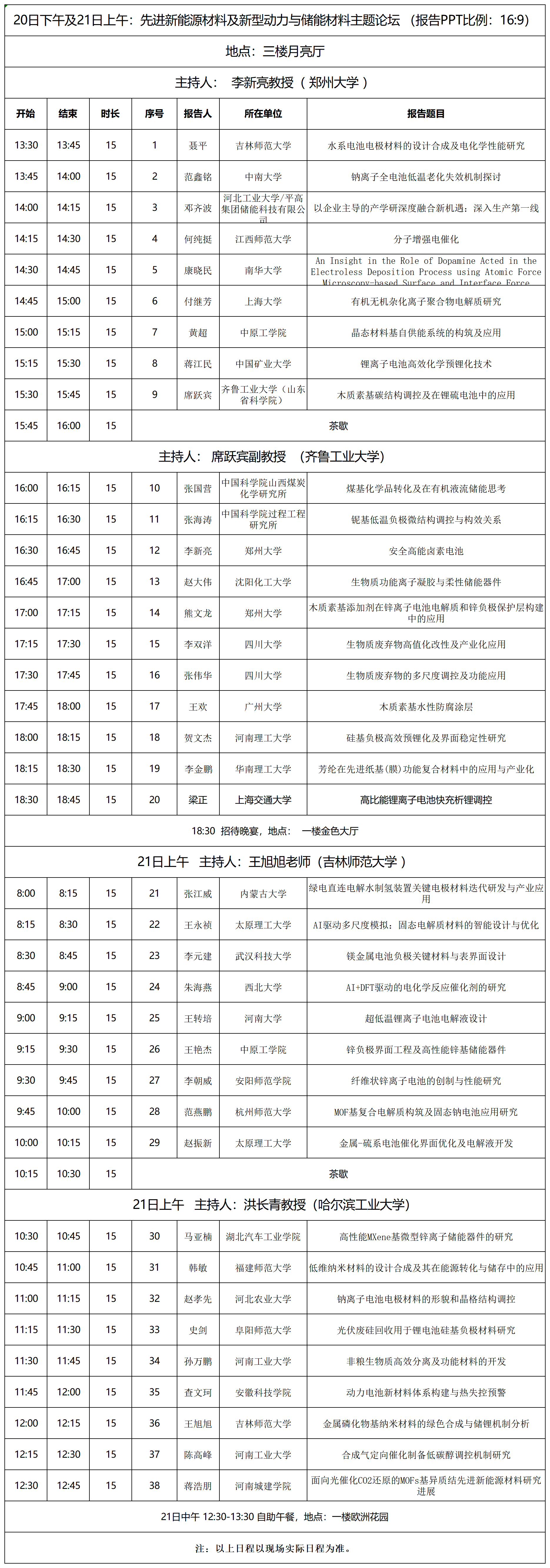 12月20日下午及21日上午:先进新能源材料及新型动力与储能材料主题论坛