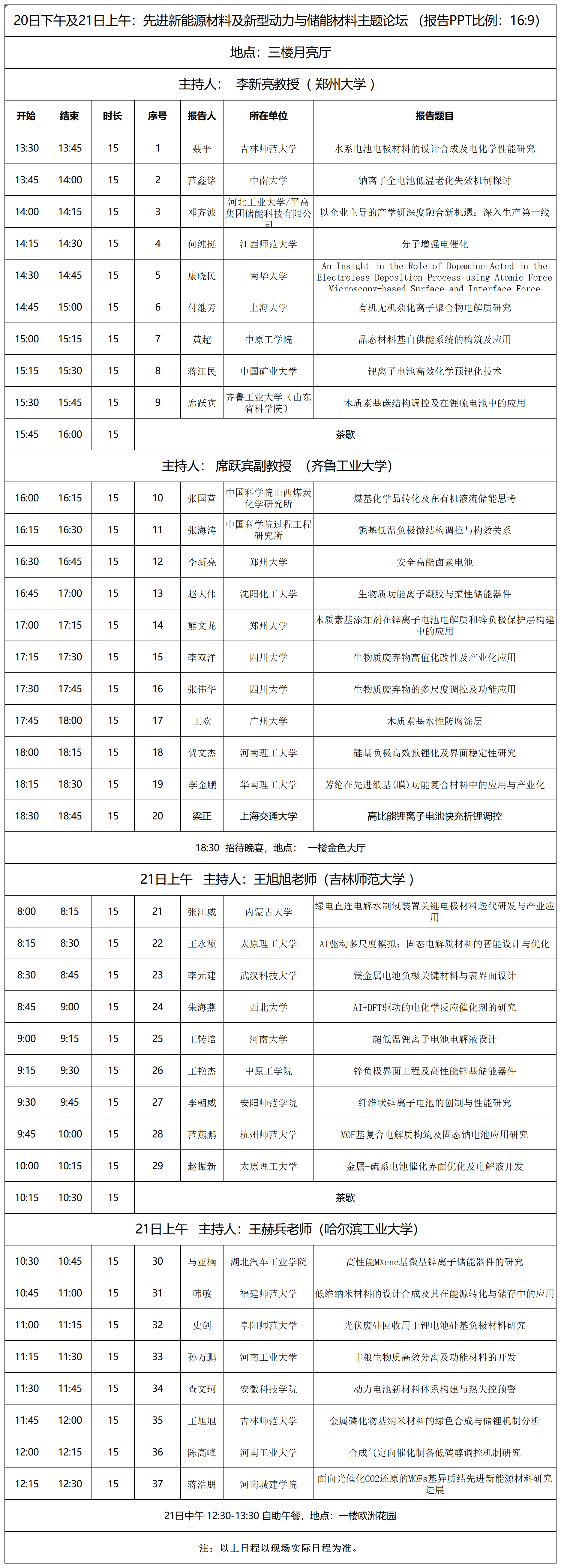12月20日下午及21日上午:先进新能源材料及新型动力与储能材料主题论坛